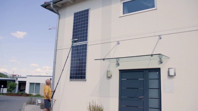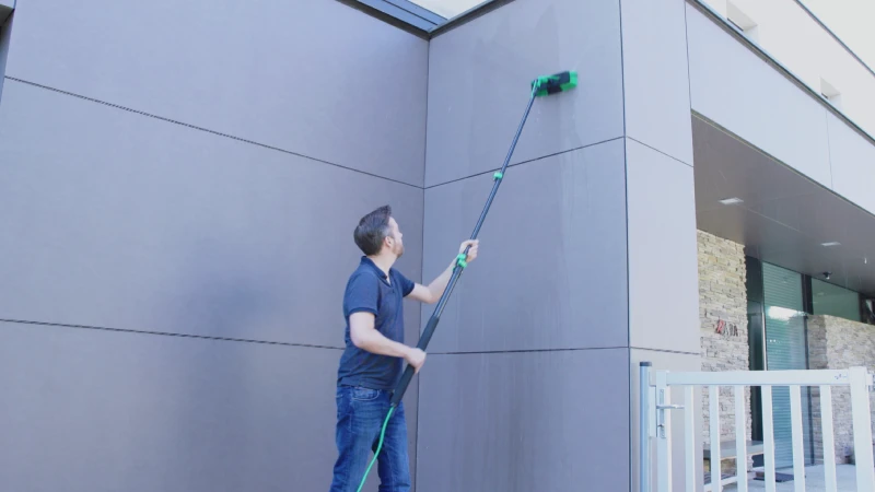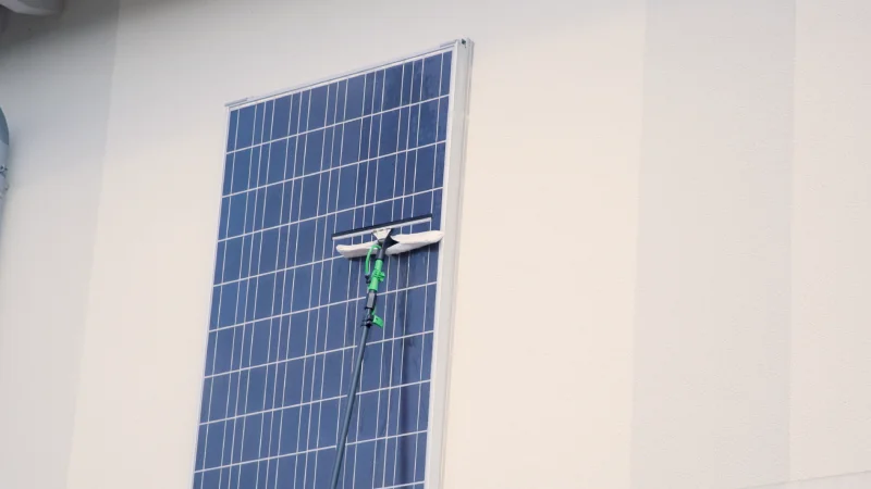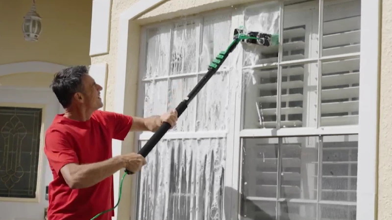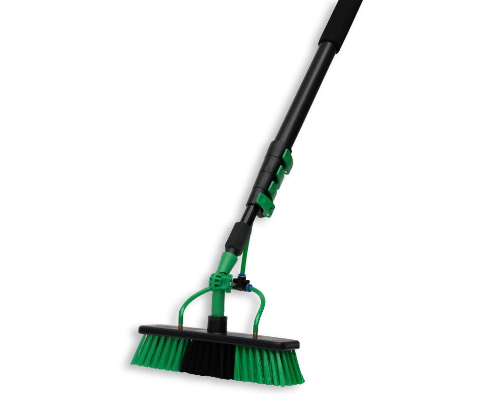 Switch to the microfiber window head for delicate surfaces. Wash and squeegee in one smooth motion — leaving glass, mirrors, and solar panels crystal clear with no water spots.