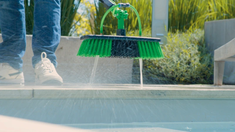 Blast away years of dirt and grime in seconds. Thousands of durable nylon bristles and two hydro jets scrub and rinse at the same time — leaving every surface spotless.